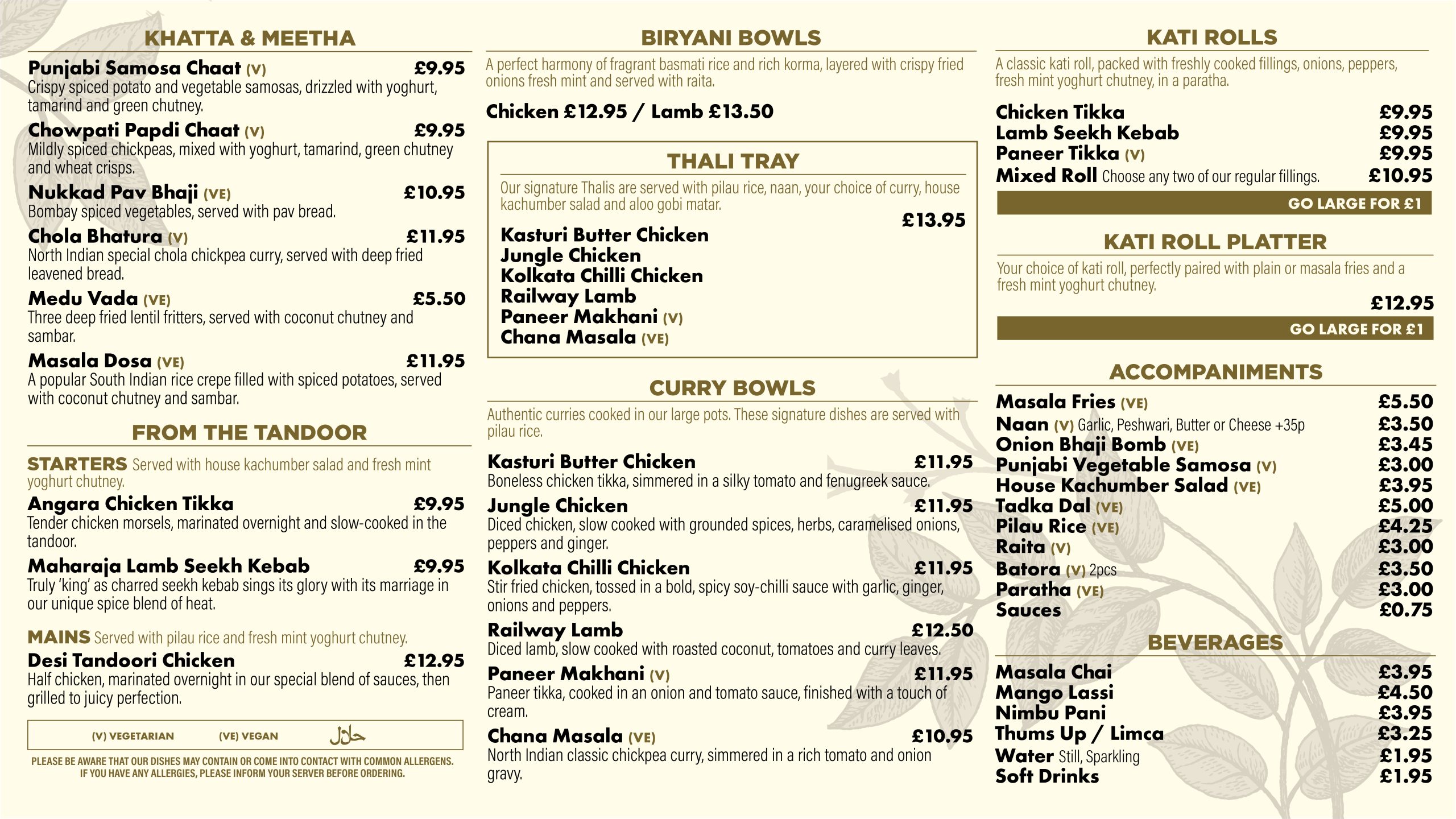 Canary Wharf Menu